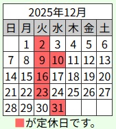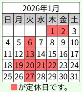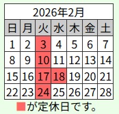 2月は第2水曜祝日のため営業となり、代わって第3水曜をお休みいたします